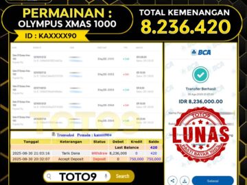 Selamat kepada User id : KA****90 Telah berhasil mendapatkan kemenangan besar pada permainan slot game GATE OF OLYMPUS XMAS 1000 kemenangan Sebesar Rp.8.236.420, Setelah…