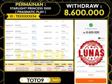 Selamat kepada User id : TE***34 Telah berhasil mendapatkan kemenangan besar pada permainan slot STARLIGHT PRINCESS 1000 kemenangan Sebesar Rp8.600.000…