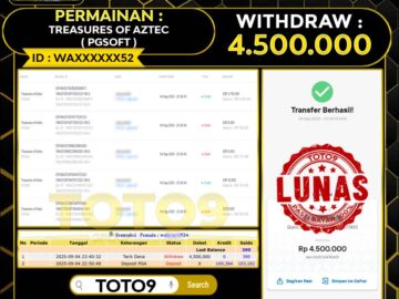 Selamat kepada User id : WA******52 Telah berhasil mendapatkan kemenangan besar pada permainan slot TREASURES OF AZTEC ( PGSOFT…