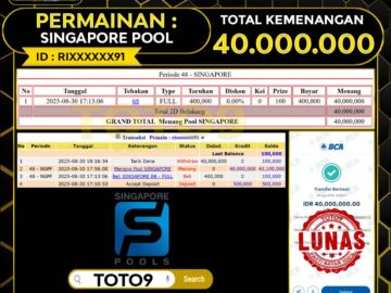 Selamat kepada User id : RI****91 Telah berhasil mendapatkan kemenangan besar pada permainan togel SINGAPORE POOL kemenangan Sebesar Rp 40.000.000 , Setelah mengisi…