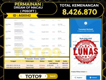 Selamat kepada User id : AG**42 Telah berhasil mendapatkan kemenangan besar pada permainan slot DREAM OF MACAU WD kemenangan Sebesar Rp…